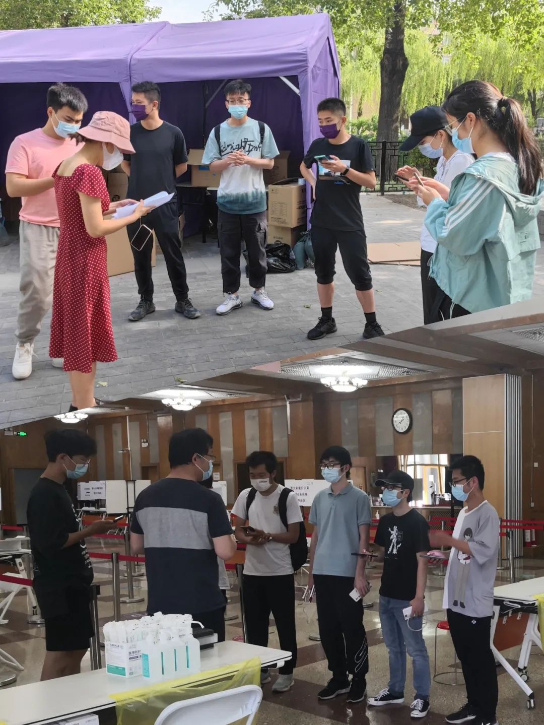 的近80位志愿者同学以集体形式参加了核酸检测志愿服务工作,其中土木工程系暨建设管理系共有近40位本研同学参与活动。同学们在37度高温中认真负责地完成了信息录入和秩序引导工作,通过主动奉献、参与劳动,为抗疫工作贡献了自己的力量。